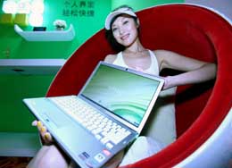 日前,索尼公司在上海宣布,啟動VIAO筆記本電腦全新品牌內涵,將新內涵定位為“影音智合”,以適應3G、高清化、數字化的時代要求。圖為模特展示索尼新款VAIO筆記本電腦SR系列產品。