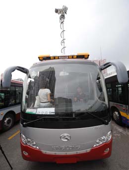作為大型活動、突發事件的公交臨時“指揮大腦”,北京市29日啟用了公交應急指揮車。它不僅可以調派公交車,還可以采集事件地點周邊人流、公交運行情況通過衛星等發送方式傳輸至北京公交集團的監控指揮中心。