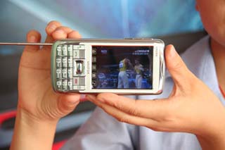 奧運會臨近,武漢工貿家電等手機賣場內,眾多品牌手機新推出的電視手機受到顧客青睞。