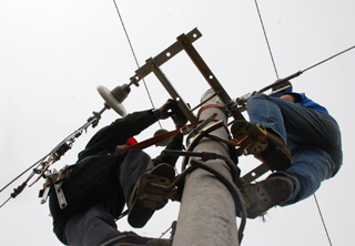 長期以來,青海牧區的藏族牧民只能依靠自家的太陽能光伏板發電,電流量小、電壓不穩,大多數家用電器無法使用。國家電網公司在青海省啟動“戶戶通電”工程后,大電網不斷向牧區延伸入戶,為10多萬藏族牧民送上了放心電力。圖為青海省興海供電公司施工人員在為莫多村架設“戶戶通電”線路。
