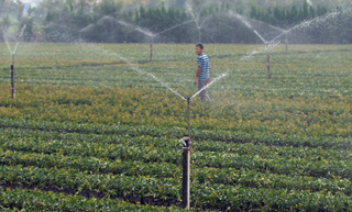上虞市越泉農牧有限公司職工用沼氣殘液澆灌花木。(新華社:韓堅 攝)