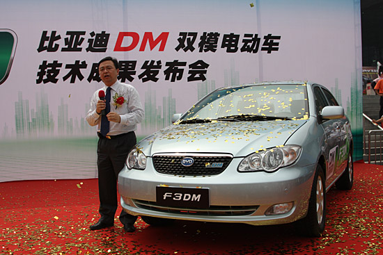 10月12日上午,深圳高交會開幕當日,我國自主品牌汽車代表企業之一比亞迪公司發布重大科技成果,該公司歷時數年研制的比亞迪F3DM雙模新能源轎車已完成各項測試,將于今年年底正式上市。屆時比亞迪將成為世界上第一個實現油電混合和電動雙模轎車商業化的企業。圖為比亞迪總裁王全福在發布會上詳解什么是雙模轎車。