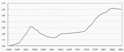 2008年9月,中原(上海)領先指數為159點,樣本成交均價為18294元/平方米,環比下跌0.52%;同時二手房成交量也繼續大幅萎縮,環比上月減少了20%左右?傮w來說,9月上海二手房市場繼續呈現量價齊跌的態勢。