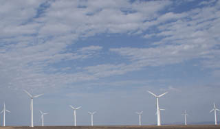 由甘肅火電工程公司承建的甘肅景泰興泉風電場30臺機組近日安裝完工。這項工程總投資3.97億元,總裝機容量4.5萬千瓦,年上網電量8420萬千瓦時。圖為即將并網發電的風力發電機組。