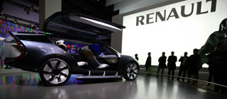 雷諾公司在巴黎車展上展示的Ondelios概念車。這款概念車可以在7.8秒內從0加速至100公里/小時,燃料消耗量是每百公里4.5升,二氧化碳的排放量為120克/公里。