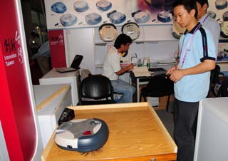 在日前舉行的第104屆中國進出口商品交易會(廣交會)上,一批設計新穎而又實用的出口商品受到采購商的青睞。圖為一家臺灣參展企業參展的全自動吸塵器。