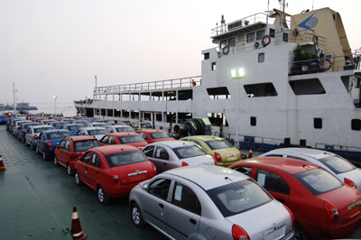一批出口到委內瑞拉的奇瑞汽車在碼頭等候裝船(10月16日攝)。本報記者:李健