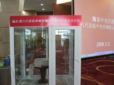 日前,海爾中央空調在北京舉辦了海爾第六代家庭中央空調除甲醛系列新品上市會,此次海爾推出的第六代家庭中央空調除甲醛系列新品,不但延續了從產品到方案全程節能的優勢,更為突出的是,該系列新品能夠短時間內迅速降低室內甲醛含量,改善空氣質量,適合中國消費者冬季“關門閉戶”的生活習慣,保證室內空氣健康,為用戶營造溫馨的居家環境。圖為會議現場擺放的除甲醛新品體驗屋!