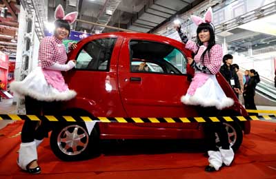 由中國節能協會、湖南省經濟委員會、長沙市人民政府主辦的“2008中國(長沙)節能科技產品交易博覽會”日前在長沙紅星國際會展中心舉行。圖為一家企業展出環保電動汽車。本報記者:李尕