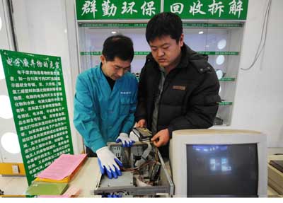 日前,電子廢棄物專業拆解企業——哈爾濱群勤環保技術服務有限公司,進駐哈爾濱市高校和科技企業集中區的大型電子產品商場“百腦匯”。業內人士認為,這種以“正規軍”駐店收購形式向電子產品流通和使用人群普及電子垃圾的環保處置理念,必將受到人們的歡迎。