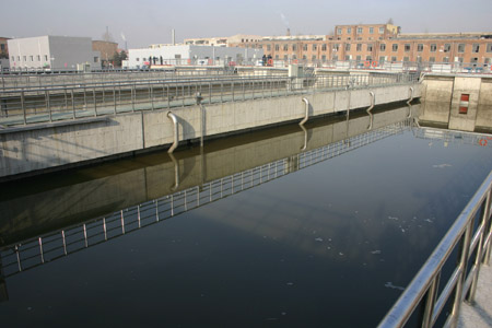 呼和浩特市公主府、章蓋營兩座污水處理廠日前投入試運行,該市污水日處理能力由10萬噸提高到21萬噸,污水處理率由42%提高到85%以上,每年新增COD減排能力1萬噸。這是投入使用的呼和浩特公主府污水處理廠污水二次處理池。