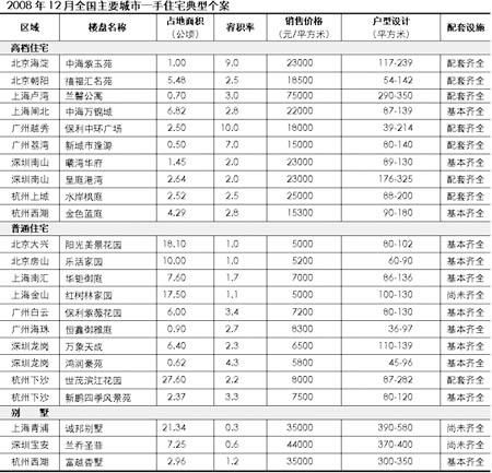 2008年12月全國主要城市一手住宅典型個案