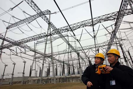 1月26日,在皖電東送重點工程——巢湖500千伏昭關變電所,供電職工利用紅外線測試設備檢測電網運行,確保供電安全。