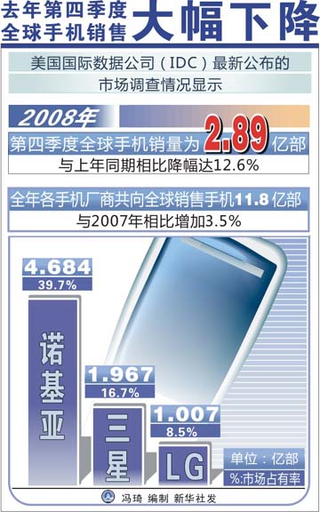 2008年第四季度全球手機銷售大幅下降[圖]