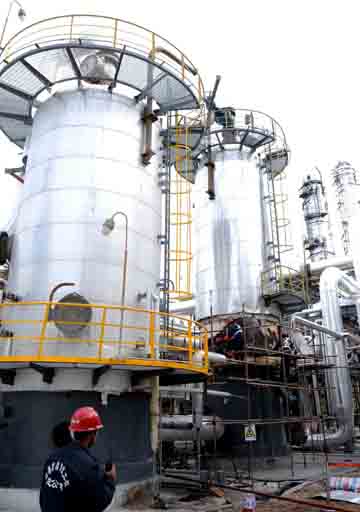 技術人員在內蒙古伊泰集團煤制油公司合成裝置區安裝設備。本報記者:張領