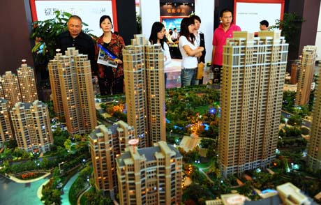 4月16日,福州市第20屆住宅產業與科技成果交易會在福州國際會展中心舉行,吸引眾多市民前往參觀咨詢。圖為市民在住交會上參觀樓盤模型。