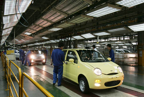 奇瑞汽車有限責任公司員工為剛剛下線的QQ汽車進行檢測。 1997年3月,奇瑞公司在一片沙灘上打下第一根樁。此時,國際汽車業巨頭已相繼在中國市場布局,家門口的國際競爭烽煙四起,這決定了奇瑞從一出生起,就踏上了一條充滿荊棘之路。 2009年一季度,奇瑞汽車銷售過十萬輛,創造了公司歷史上的最好業績,同時還創造了建廠12年累計銷售150萬輛的奇跡,這在世界汽車發展史上都是少見的。新華社記者 王雷 攝