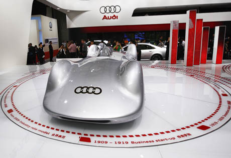 正在上海舉行的第13屆上海國際汽車工業展覽會上,參展商展出的充滿科技感和時尚感的概念車交相輝映,讓人耳目一新。圖為車展上的奧迪概念跑車。本報記者 裴鑫 攝