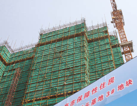位于上海南匯的一處經濟適用房工地(4月21日攝)。據上海市房管部門介紹,上海在2008年開工建設400萬平方米經濟適用房的基礎上,2009年將再新開工建設400萬平方米經濟適用房。目前,全市已形成浦東三林、南匯航頭、徐匯華涇、閔行浦江等多個保障性住房基地,首批房源將在下半年配售入市。