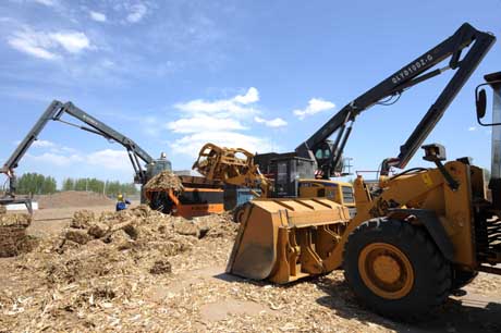 5月3日,位于內蒙古赤峰市松山區安慶工業園內的國能赤峰生物發電有限公司原料庫工人正在裝填秸稈。 國家能源戰略儲備基地——內蒙古自治區積極探索風電、太陽能、生物能源利用新技術,與國內大型能源電力企業聯手,打造綠色能源基地。2008年初,內蒙古率先在資源條件優越的赤峰市建成自治區首家生物發電機組,利用周邊農區的秸稈原料進行直燃發電。目前,已投產的一期工程年創7200萬千瓦時的綠色電能,同時可直接增加農民收入2000多萬元。整個項目計劃投資5億元,規劃裝機容量5萬千瓦,每年消耗玉米秸稈32.7萬噸,年發電量2.75億千瓦時! |