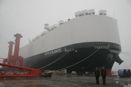 由威海三進船業有限公司為一家挪威公司建造的“大西洋”號大型汽車運輸船于5月11日早上6時進行首航,開往韓國仁川港。這艘汽車運輸船船長199.90米,寬32.26米,高34.55米,可裝載6700輛汽車。