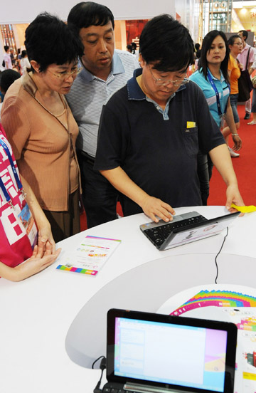 5月17日,參觀者在文博會的一個體驗點體驗G3上網本。