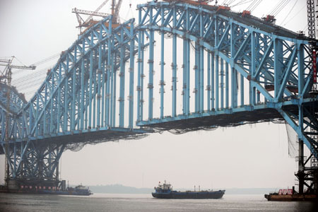 京滬高速鐵路南京大勝關長江大橋南岸合建段簡支梁施工已經全部完成,目前距離合龍只剩下最后的24米。南京大勝關長江大橋工程全長9.273公里,是京滬高速鐵路的控制性工程,也是滬漢蓉鐵路通道及南京鐵路樞紐的重要組成部分。