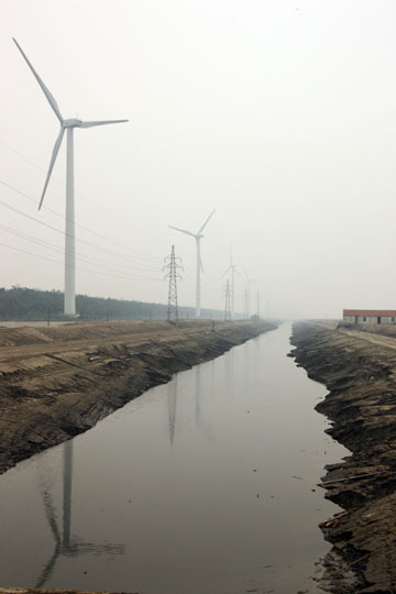 2008年如東風電場風機平均可利用率達到98.93%,為同類機型全球最高。截至今年5月底,該項目已累計發電近9億千瓦時,相當于節約標準煤34萬噸,節水180萬噸,減排二氧化碳94萬噸,減排二氧化硫5400噸。圖為江蘇如東風電特許權二期項目已建成投入使用的部分風電機組。新華社記者高學余攝