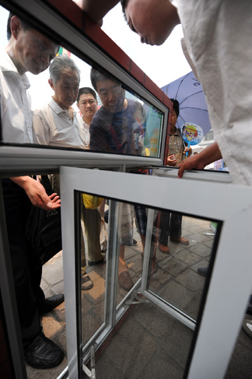 下圖為市民觀看一鋼窗節能改造技術的展示。