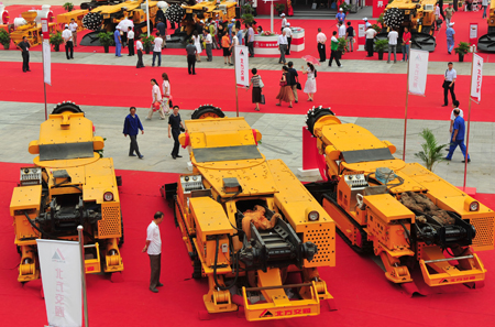 6月18日,寧夏能源及電力產業博覽會在銀川國際會展中心開幕,來自國內外的360多家裝備制造企業參展。這是展會上展出的大型采掘設備。