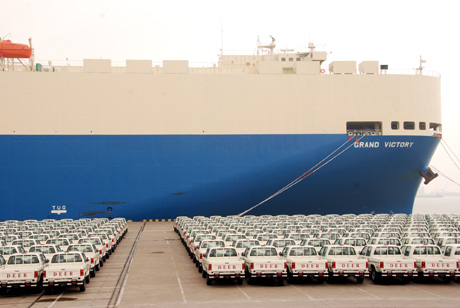 | 6月17日,1300輛國產汽車從天津港出口非洲。新華社發(扈明攝) |