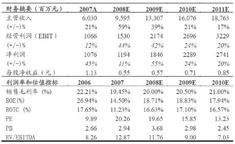 申銀萬國下調了中海油服日費率和使用率水平,將2009、2010年的業績預測由原先的0.86、1.10元下調為0.74、0.89元。2009年由于高位并購+行業景氣下滑,公司面臨一定壓力,不過目前油價已升至70美元/桶水平,盡管油價上漲對公司2009年業績影響不大,但申銀萬國認為如果下半年油價能維持在60-65美元/桶水平,公司10年的不確定性將會大大減少,11年三艘半潛式鉆井船投入以及深水項目的啟動將會給公司帶來較大增量。公司是適合長期持有的品種,基于對長期油價以及國內油田服務行業看好,依然維持增持投資評級。 |