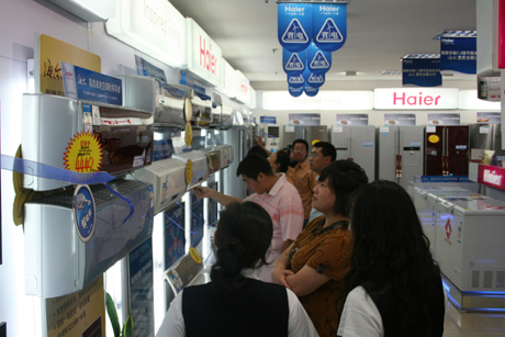 海爾高效節能省電空調吸引了越來越多消費者的關注。新華社記者 劉寶森 攝