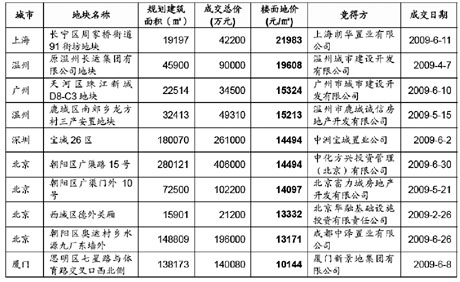 ■重點城市土地成交樓面地價排價榜(2009年1至6月)