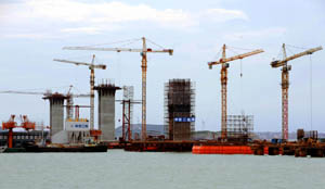 福建平潭海峽大橋自2008年2月正式動工以來施工進展順利,即將進入主橋箱梁澆筑階段,預計2009年底將完成所有樁基、承臺施工,大橋力爭在2011年元旦基本建成。