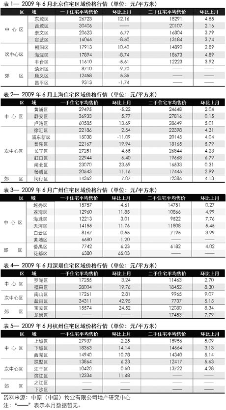 ■五大城市二手住宅板塊漲幅榜(2009年6月)