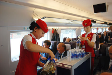 “由于人流量突增,地毯更新速度變快,我們只好統一換成了復合地板!”天津狗不理集團股份有限公司總經理李永善高興地告訴記者,京津城際高鐵開通一年來,天津10家“狗不理”的營業額大幅增長,平均增幅20%以上,部分店高達50%!霸S多從北京來的游客認的就是我們狗不理總店,一年來新增的顧客大部分都是北京來的!” 我國首條高速鐵路、時速350公里的京津城際高鐵通車運營至今已經一年,共計運送旅客1870萬人次,京津間的總體客流比開通前增長86%,旅客滿意率高達99%。