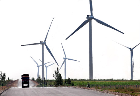 在內蒙古自治區興安盟的境內,時常能夠看到公路兩旁矗立著一座座高大的風力發電機。據統計,截至5月底,內蒙古自治區風電并網已達315.28萬千瓦,居全國第一。近年來,風電開發不僅帶動了當地的相關產業,因風電工程建設鋪設的公路,使當地的交通條件也得到了很大改善,“風車動,道路通”,成了草原新景觀。