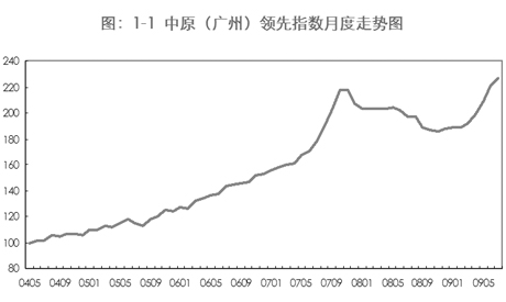■中原(廣州)領先指數(2009年7月) ●中原(廣州)領先指數為226點,樣本成交均價為10205元/平方米,環比升幅達2.8%,創有統計以來的最高記錄,較2007年10月的歷史高峰217點還要高出4%。 ●成交量環比開始小幅回調,但降幅不足一成。