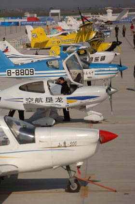 我國最大規模通用航空展在日前陜西舉行。據介紹,預計參展國內外飛機百余架,囊括了波音E75、塞斯納172、塞斯納182、西銳SR22、羅賓遜R22等多種目前業界公認的經典機型。本報記者
