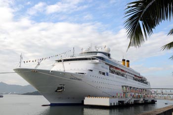 2009中國郵輪產業發展大會暨首屆國際郵輪博覽會11月在三亞舉辦。圖為?吭谌齺嗻P凰島國際郵輪碼頭的歌詩達“經典號”郵輪。新華社記者 鄭瑋娜 攝