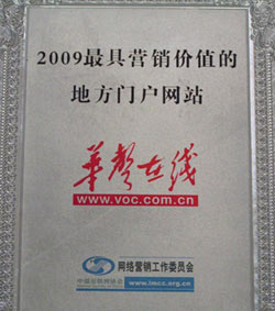 華聲在線榮獲“2009最具營銷價值地方門戶網站獎”
