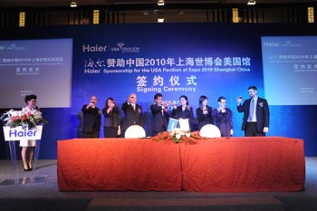 4月7日,海爾美國與世博美國館舉杯慶祝建立合作關系。 |