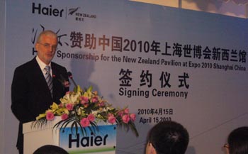 4月15日,世博新西蘭館總代表吉賦禮表示,海爾已成為新西蘭館最重要的合作伙伴之一。 |
