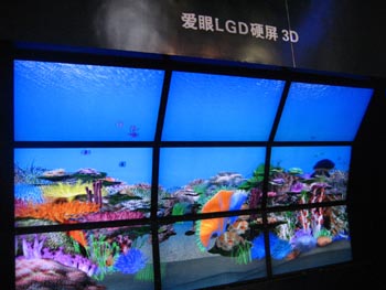 據了解,LGD展出的首款需配偏振眼鏡的47英寸3D液晶電視面板目前已經量產,這種面板也稱偏光式3D液晶電視面板,其模式和我們在IMAX影院欣賞到的3D電影《阿凡達》的模式基本相同。收看采用這種技術的3D液晶電視,觀眾只需佩戴偏光眼鏡,左右眼便能看到不同光線來源的流暢畫面,以此產生3D視覺效果。由于采用這一技術的眼鏡只需貼上偏光膜即可使用,因此比快門式3D電視,在健康舒適度以及眼鏡成本上更具優勢。 目前,我們在國內賣場見到的3D液晶電視大都采用快門式技術,即利用快門式眼鏡依次快速閉合,使左右眼在不同的時間內看到“略有差別”的電視畫面,來形成3D視覺效果。這種技術在兩幀畫面在快速切換時,會因為“視覺暫留”現象,而引起“重影”、“頭暈”等現象的發生。因此,在未來的3D液晶電視應用中,偏光式比快門式技術更具優勢。由LGD領銜的偏光式3D電視顯示技術和其他眾多廠商推出的快門式3D電視顯示技術兩大流派,或將在未來一段時間內,左右3D液晶電視市場的發展走勢。 另外,LGD還展示了目前響應速度最快的True Motion 480Hz液晶電視面板和世界上最薄的2.6mm液晶電視面板等結合了“IPS+LED”技術的高性能電視及IT用液晶面板。 除此之外,LGD展出的面向公共顯示領域的可耐100度高溫的液晶面板同樣引人關注。據現場LGD工作人員介紹,普通液晶面板在表面溫度超過75攝氏度時,部分畫面會變成黑色,產生黑化現象,而本次LGD展出的一款面板采用了其獨家研發的液晶結構技術,即使溫度超過75度,甚至在100攝氏度以上的高溫條件下,仍可保持清晰的畫質,并且不會消耗額外的電力。