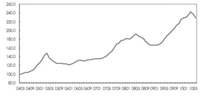 2010年6月中原(上海)領先指數 228.3點,上海二手指數均價25536元/平方米,環比下降3.55%,同比上升21.7%。
