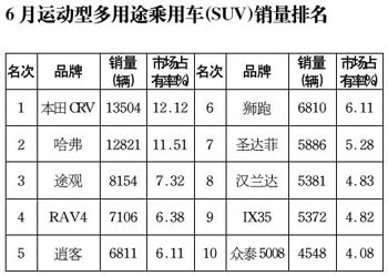 6月運動型多用途乘用車(SUV)銷售表現突出,銷售111397輛,環比增長8.06%,同比增長1.1倍,遠高出乘用車銷售平均水平。 其原因是SUV市場的產品格局已經發生了很大變化,SUV市場的主體已經完成了從低端經濟型SUV向城市SUV的過渡。另外,二次購車者尤其青睞SUV車型。在購買SUV車型的消費者中,有80%左右是換車的人群。 從6月份的銷售情況來看,兩驅SUV:長城汽車、北京現代、湖南江南居前三位,單月銷量分別為10397、7819、7177輛。四驅SUV:東風本田、一汽豐田、榮城華泰位居前三位,單月銷量分別為13504、8746、6175輛。 6月,銷量排名前10位的SUV品牌與上月相比,排名發生較大變化,僅有獅跑、圣達菲和眾泰5008排名保持不變,上月第二的本田CRV超過哈弗位居第一,途觀和逍客排名有所上升,RAV4、漢蘭達、IX35名次均有所下降。前10位中,環比增長有六款車型,其中逍客增長最快,為34.01%,途觀增長32.67%,本田CRV增長32.26%;下降的四款車型中,哈弗較上月下降最大,為15.79%,漢蘭達下降了12.97%。 |