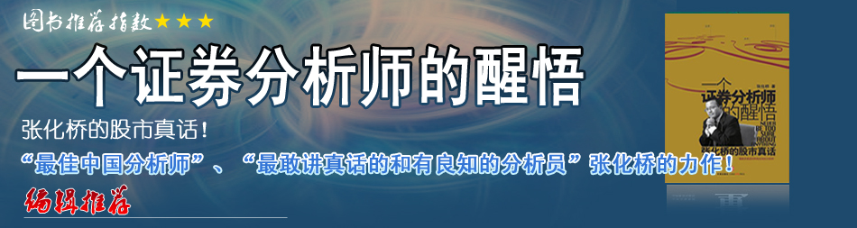 | 化橋是資深的銀行家。之前,他因“看穿”中國經濟的某些問題和揭露了一批有瑕疵的上市公司而成為市場公認的“最敢講真話和最有良知的分析師”。在我看來,當今中國,發表鮮明的觀點“警世濟民”而且不圖個人利益的經濟界人士中,張化橋名列前茅,而且他至今“直心不改”…[詳細] |