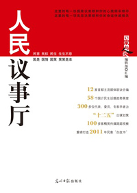 時逢2011新年伊始,第十二屆全國人民代表大會和政協第十二屆全國委員會(“兩會”)召開在即,光明日報出版社推出了《國家與人民》系列圖書。該系列圖書包括《國家智囊團》《人民議事廳》兩本,由12家首都主流媒體的編輯、記者組成《國家與人民》編委會,經過縝密篩選,匯編了300多位人大代表、政協委員、專家學者及社會人士的提案議案、專訪專述及話題追蹤,對時下58個熱門的國計民生話題進行了廣泛而深入的探討,可謂2011年的“民意白皮書”。更重要的是,該書記錄了我國一日千里的社會經濟發展變遷,展示了我國人民代表大會制度及多黨合作的民主政治制度的歷史進程,是了解當今中國的一份有價值的珍貴檔案,具有鮮明的創新性、啟迪性、資料性,為我國“十一五”規劃與“十二五”規劃的交接年鐫刻下了厚重的年代鈐印。