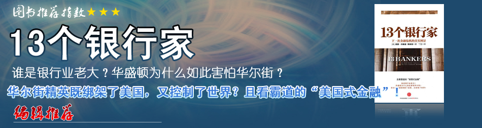 | 看了這本書,感覺題目有些危言聳聽,不過書的內容還算中規中矩。書中提到的13個銀行家實際上是美國金融市場的一個縮影。 |